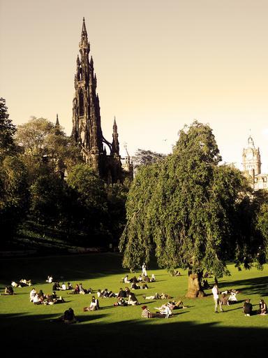 Keywords: scott monument edinburgh scotland monument green park people picnic