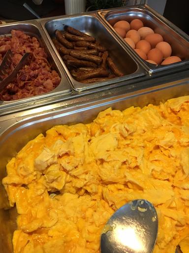 Keywords: scrambled eggs bacon sausage food egg restaurant buffet breakfast gastronomy breakfast buffet delicious