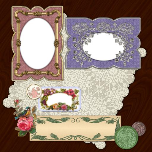 Keywords: scrapbook scrap background page craft frame flower floral rose bird button medallion periwinkle ribbon postcard blank vintage antique victorian lady woman lace tablecloth doily embroidery glitter transparent transparency
