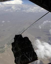 Keywords: Screamer 2K, Joint Precision Air Drop System DVIDS29498.jpg en OVER AFGHANISTAN - The new GPS guided Screamer 2K bundle Joint Precision Air Drop System fall out of the back of a C-130 Hercules over Afghanistan Aug 26 2006 over The drop was made from 17 500 feet above mean sea level and was the first joint Air Force/Army operational drop of JPADS in the Central Command Area of Responsibility Four bundles were dropped from the Alaska Air National Guard C-130 The system is designed to provide precision airdrops from high altitudes elimination the treat of small arms fire All four bundles arrived at the drop zone re-supplying Army troops on the ground with ammunition and water U S Air Force photo/Senior Airman Brian Ferguson 2006-08-26 https //www dvidshub net/image/29498 29498 2006-09-08 13 25 AF PD-USGov Lockheed C-130 Hercules Images from DoD uploaded by Fæ |