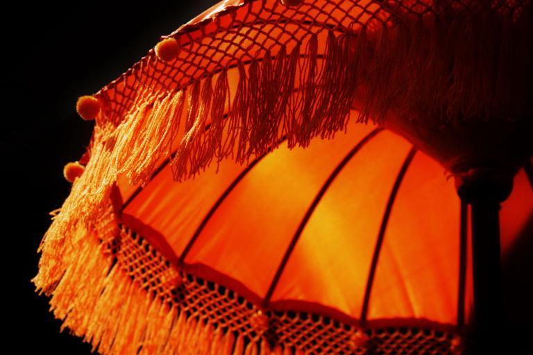 Keywords: screen parasol shade tree color colorful spokes translucent sunlight design lichtspiel fabric threads thread textiles tissue orange