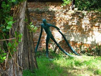 Keywords: sculpture art street art court figures still life trees wall