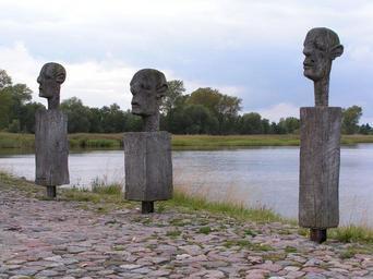 Keywords: sculpture art wood weathered men heads wieck darß baltic sea
