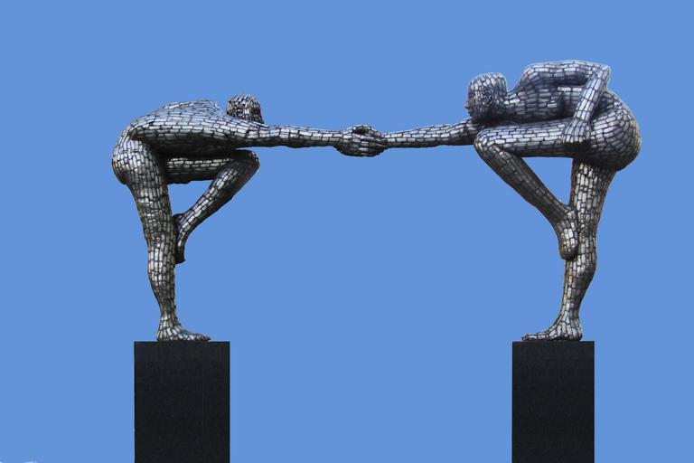 Keywords: sculpture men harmony friends friendship friendly friendliness friendlich hand giving shaking hands cheerful joy successful innovative sporty