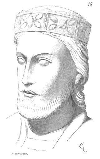 Keywords: Sculpture.porte.de.la.Vierge.Notre.Dame.Paris.png Dès les premières années du XIII<sup>e</sup> siècle la façade occidentale de Notre-Dame de Paris s'élevait à la mort de Philippe-Auguste c'est-à -dire en 1223 elle était construite jusqu'au-dessus de la rose Donc--toutes les sculptures et failles étant terminées avant la pose--les trois portes de cette façade étaient montées en 1220 Celle de droite dite de Sainte-Anne est en grande partie refaite avec des sculptures du XII<sup>e</sup> siècle mais celle de gauche dite porte de la Vierge est une composition complète et l'une des meilleures de cette époque Il est évident pour tout observateur attentif et non prévenu--car beaucoup d'artistes bien convaincus que cette sculpture est sans valeur n'ont jamais pris la peine de la regarder--que les statuaires auteurs de ces nombreuses figures ont abandonné entièrement les traditions byzantines dans la conception comme dans les détails et le <i>faire</i> qu'ils ont soigneusement étudié la nature et qu'ils atteignent un idéal leur appartenant en propre Voici fig 15 une tête d'un des rois petite nature qui garnissent l'une des voussures de cette porte Viollet-le-Duc Drawings by Eugène Viollet-le-Duc |