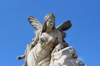 Keywords: sculpture statue stone fairy stone fairy sky blue background vienna old