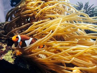 Keywords: sea anemone anemone fish ocean underwater meeresbewohner lake water blue orange coral