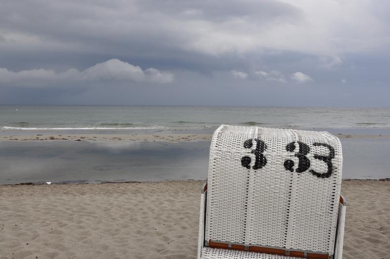 Keywords: sea beach beach chair water ocean clouds sky gloomy sand digit