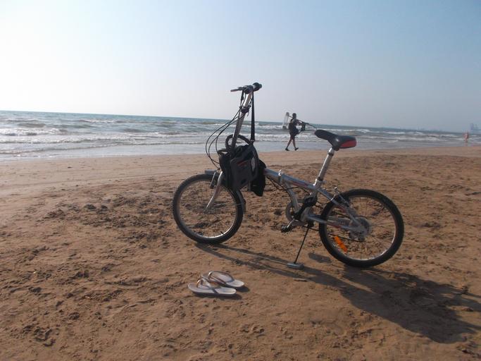 Keywords: sea beach sunset dawn bicycle exercise landscape mediterranean sea