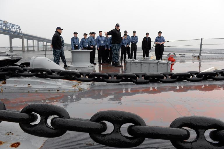 | Keywords: Sea cadet training 150317-N-PX557-128.jpg en 150317-N-PX557-128 FALL RIVER Mass March 17 2015 Chief Boatswain ™s Mate Herb Kresge assigned to U S Naval War College NWC in Newport Rhode Island provides seamanship training to sea cadets assigned to Defiant 338 Royal Canadian Sea Cadet Corp from Kemptville Ontario on the forecastle of the South Dakota-class battleship USS Massachusetts BB-59 in Fall River Mass Chief petty officers from NWC met the visiting cadets onboard Massachusetts and provided Navy familiarization seamanship and firefighting training U S Navy photo by Chief Mass Communication Specialist James E Foehl/Released 2015-03-17 Chief Petty Officer James Foehl https //www dvidshub net/image/1827662 150317-N-PX557-128 2015-03-21 05 31 FALL RIVER MA US PD-USGov-Military-Navy Firefighting training Images from DoD uploaded by Fæ |