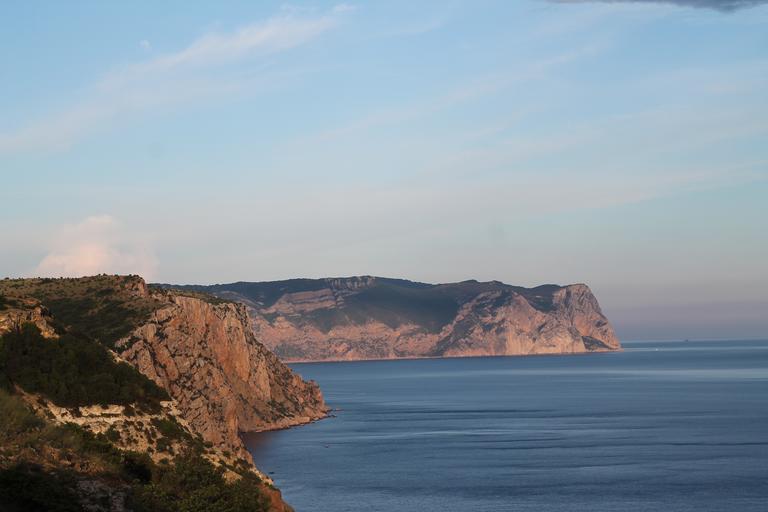 Keywords: sea mountains fiolent crimea sky journey blue sky pink sky bay horizon