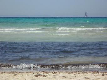 Keywords: sea ocean blue water beach holiday coast holidays landscape view rest summer mediterranean sand beach relaxation chill out idyll colors of the sea sailing boat horizon
