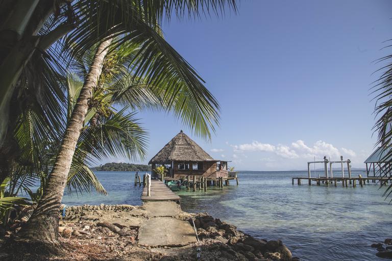 Keywords: sea pier ocean water dock nature landscape outdoor sky blue travel port harbor wooden tourism wood beach caribbean shelter hut house palm tree