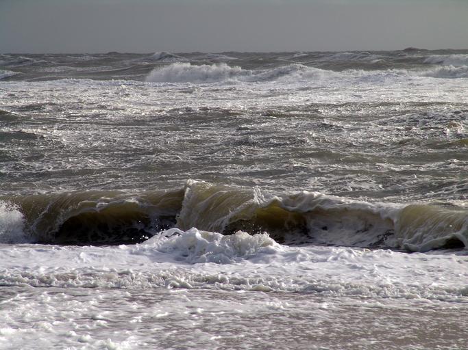 Keywords: sea wave water spray foam surf stormy north sea windy swell coast holiday