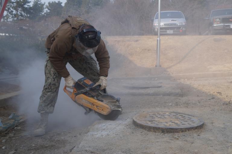 Keywords: Seabees continue humanitarian work, construction operations in Pacific 140222-N-QJ900-394.jpg en A Seabee from Naval Mobile Construction Battalion 1 Detail Chinhae cuts into concrete slabs during construction operations Feb 22 NMCB 1 Detail Chinhae is tasked with preparing a side road to the Turtle Cove Dining Facility where the Republic of Korea contractors will lay asphalt Aligned with Secretary of the Navy Ray Mabus' four priorities of people platforms partnerships and power NMCB 1 will deliver the Navy's forward presence through its work with several host nations at its CCADs in the Pacific and will continue to conduct construction operations in the Northern Command U S Navy photo by Aviation Boatswain's Mate 3rd Class Leanna Manke/Released <br>Unit Naval Mobile Construction Battalion 1 2014-02-23 NMCB https //www dvidshub net/image/1177518/seabees-continue-humanitarian-work-construction-operations-pacific 140222-N-QJ900-394 2014-03-02 01 24 CHINHAE KR PD-USGov-Military-Navy Photographs by Defense Video and Imagery Distribution System Ray Mabus in 2014 Images from DoD uploaded by Fæ |