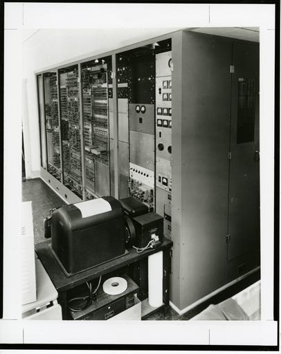 | Keywords: SEACComputer 033.jpg The teletype keyboard and printer were used for direct input and output with numbers and instructions coded in hexadecimal notation Indirect operation was also possible through the use of punched paper type National Institute of Standards and Technology 7/1/1950 National Institute of Standards and Technology PD-USGov-NIST PD-USGov SEAC computer |
