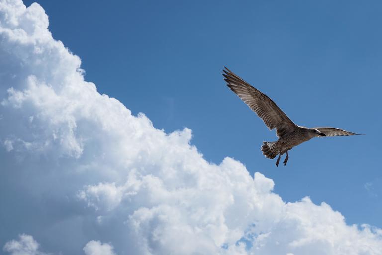 Keywords: seagull baltic sea fly seevogel flight bird water bird nature sea lake bird of prey bill plumage feather white sky blue clouds blue sky sky blue