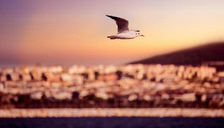Keywords: seagull sea gull seabird bird sea-gull sunset dusk nature flight fly animal feather wing freedom wildlife soaring one cityscape flying soar