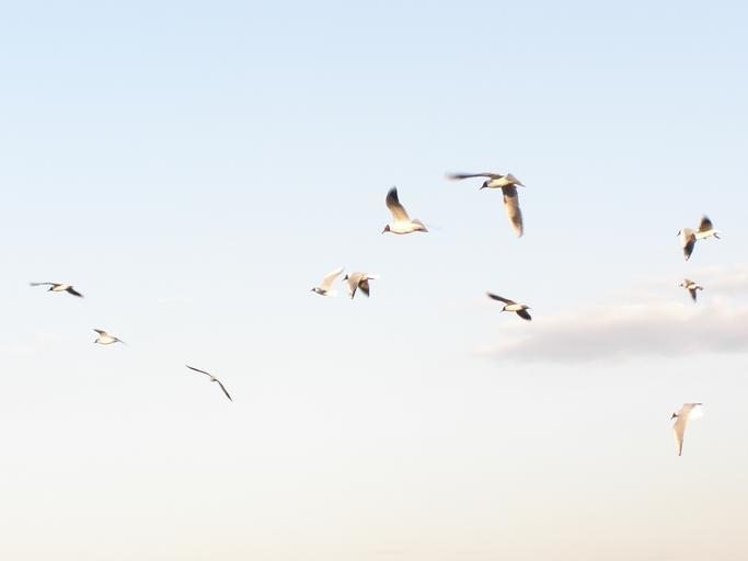 Keywords: seagulls flying spring sky clouds bird freedom wing gull wildlife feather air ocean soar high travel beach peace coast seabird animals gliding shore horizon flight hover spread glide environment skimmers wader migratory birds