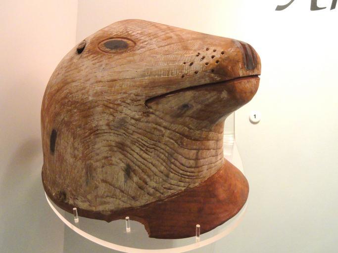 | Keywords: Seal decoy helmet, Pacific Eskimo, Kodiak Island, before 1869 - Native American collection - Peabody Museum, Harvard University - DSC05643.JPG Seal decoy helmet Alutiiq Kodiak Island before 1869 Exhibit from the Native American Collection Peabody Museum Harvard University Cambridge Massachusetts USA Photography was permitted without restriction; exhibit is old enough so that it is in the public domain Daderot 2012-03-18 14 11 42 Daderot cc0 cc0 Native American Collection Peabody Museum Harvard University Alutiiq Sculptures in Alaska Native American woodcarving Seal hunting Hunting decoys Helmet masks Carved wooden figurines Pinnipedia heads Unidentified Phocidae |