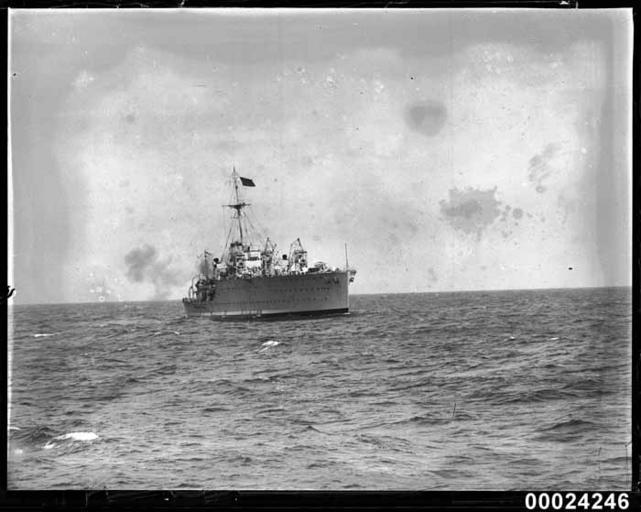 | Keywords: hmas torrens hmastorrens the hood collection thehoodcollection ship warship royal australian navy royalaustraliannavy australian navy australiannavy ran hmas torrens (d67) hmastorrensd67 d67 river-class riverclass torpedo boat destroyer torpedoboatdestroyer destroyer hmas albatross hmasalbatross hms albatross hmsalbatross seaplane tender seaplanetender south western steam navigation company southwesternsteamnavigationcompany pride of torquay prideoftorquay yannoulatos group yannoulatosgroup hellenic prince hellenicprince hmas albatross (1928) hmasalbatross1928 royal navy royalnavy seaplane carrier seaplanecarrier blackandwhite monochrome photo border outdoor black and white Having served in the Royal Australian Navy from 1916, latterly as a training platform for the Naval Reserve, HMAS TORRENS I was decommissioned and prepared as a target for Fleet Gunnery Practice. On 24 November 1930 Samuel J Hood, who was probably on board HMAS ANZAC, photographed the sinking of TORRENS off Sydney Heads. The Royal Australian Navy seaplane carrier HMAS ALBATROSS is photographed here during gunnery practice off Sydney Heads. The smoke indicates she has fired one of her 4.7-in guns at the target. This photo is part of the Australian National Maritime Museum’s Samuel J. Hood Studio Collection. Sam Hood (1872-1953) was a Sydney photographer with a passion for ships. His 72-year career spanned the romantic age of sail and two world wars. The photos in the collection were taken mainly in Sydney and Newcastle during the first half of the 20th century. The ANMM undertakes research and accepts public comments that enhance the information we hold about images in our collection. This record has been updated accordingly. Photographer: Samuel J. Hood Studio Collection Object no. 00024246- Having served in the Royal Australian Navy from 1916, latterly as a training platform for the Naval Reserve, HMAS TORRENS I was decommissioned and prepared as a target for Fleet Gunnery Practice. On 24 November 1930 Samuel J Hood, who was probably on board HMAS ANZAC, photographed the sinking of TORRENS off Sydney Heads. The Royal Australian Navy seaplane carrier HMAS ALBATROSS is photographed here during gunnery practice off Sydney Heads. The smoke indicates she has fired one of her 4.7-in guns at the target. This photo is part of the Australian National Maritime Museum’s Samuel J. Hood Studio Collection. Sam Hood (1872-1953) was a Sydney photographer with a passion for ships. His 72-year career spanned the romantic age of sail and two world wars. The photos in the collection were taken mainly in Sydney and Newcastle during the first half of the 20th century. The ANMM undertakes research and accepts public comments that enhance the information we hold about images in our collection. This record has been updated accordingly. Photographer: Samuel J. Hood Studio Collection Object no. 00024246- |