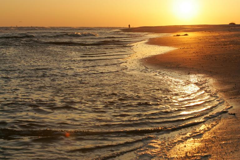 Keywords: seascape sunset ocean sun beach sand coast waves horizon water sea landscape nature sky scenic colorful orange yellow evening dusk twilight
