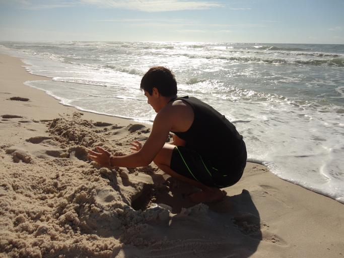 Keywords: seashore california vacation beach boy sand play shore