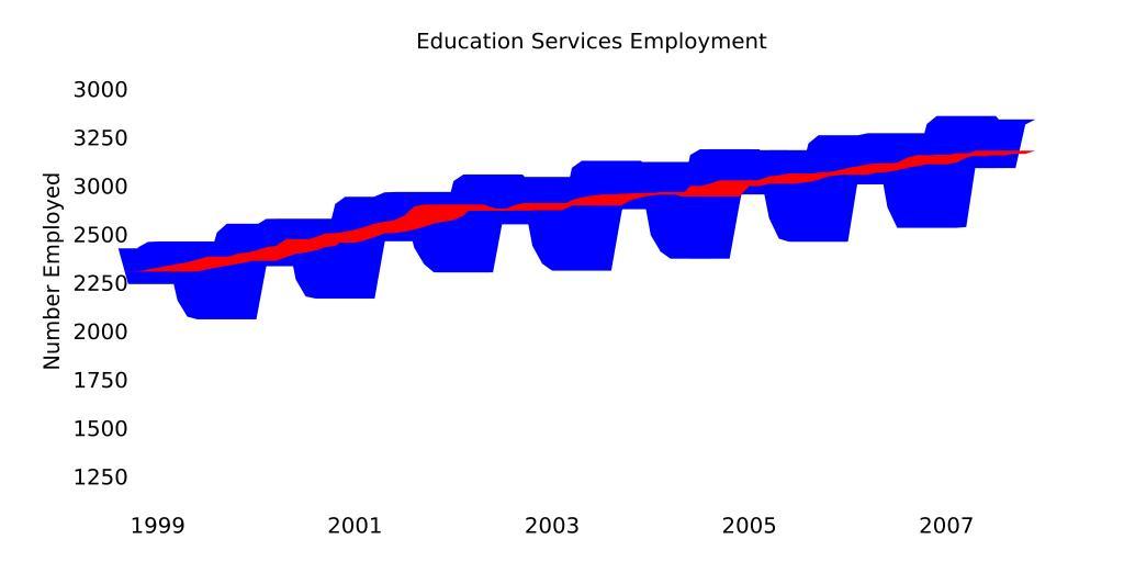| Keywords: SeasonalEducationEmployment.svg en wikipedia 2009 March 17 Plotted Education employment in the US from Jan 2000 - Mar 2007 Employment data is from en Bureau of Labor Statistics http //www bls gov Seasonally Adjusted is Red Unadjusted is Blue en wikipedia Plrk CommonsHelper 2007-12-18 Minnesota1 wikipedia en Data 400px 100 <pre> Unadjusted L 1999 916667 2468 2 L 2000 2284 4 L 2000 083333 2473 7 L 2000 166667 2501 7 L 2000 25 2503 8 L 2000 333333 2421 2 L 2000 416667 2199 6 L 2000 5 2115 9 L 2000 583333 2102 2 L 2000 666667 2373 4 L 2000 75 2550 2 L 2000 833333 2595 5 L 2000 916667 2563 L 2001 2376 4 L 2001 083333 2589 6 L 2001 166667 2620 5 L 2001 25 2621 1 L 2001 333333 2563 3 L 2001 416667 2307 1 L 2001 5 2220 3 L 2001 583333 2209 6 L 2001 666667 2495 5 L 2001 75 2697 8 L 2001 833333 2734 5 L 2001 916667 2691 5 L 2002 2505 2 L 2002 083333 2736 L 2002 166667 2757 5 L 2002 25 2759 3 L 2002 333333 2678 L 2002 416667 2472 7 L 2002 5 2387 2 L 2002 583333 2344 5 L 2002 666667 2615 2 L 2002 75 2815 7 L 2002 833333 2849 5 L 2002 916667 2792 9 L 2003 2592 6 L 2003 083333 2803 9 L 2003 166667 2817 1 L 2003 25 2836 7 L 2003 333333 2747 L 2003 416667 2481 7 L 2003 5 2388 5 L 2003 583333 2353 5 L 2003 666667 2642 L 2003 75 2883 8 L 2003 833333 2920 3 L 2003 916667 2874 3 L 2004 2670 7 L 2004 083333 2879 4 L 2004 166667 2904 1 L 2004 25 2914 3 L 2004 333333 2811 9 L 2004 416667 2536 4 L 2004 5 2451 1 L 2004 583333 2415 2 L 2004 666667 2695 9 L 2004 75 2950 3 L 2004 833333 2979 7 L 2004 916667 2941 4 L 2005 2746 8 L 2005 083333 2939 3 L 2005 166667 2960 5 L 2005 25 2975 1 L 2005 333333 2881 3 L 2005 416667 2624 5 L 2005 5 2518 2 L 2005 583333 2502 7 L 2005 666667 2815 7 L 2005 75 3010 2 L 2005 833333 3052 L 2005 916667 3003 5 L 2006 2798 5 L 2006 083333 3038 8 L 2006 166667 3052 L 2006 25 3062 7 L 2006 333333 2968 5 L 2006 416667 2680 6 L 2006 5 2574 2 L 2006 583333 2578 4 L 2006 666667 2912 7 L 2006 75 3110 1 L 2006 833333 3151 3 L 2006 916667 3092 9 L 2007 2882 7 L 2007 083333 3107 5 L 2007 166667 3133 6 2102 2 3151 3 adjusted L 1999 916667 2350 5 L 2000 2351 2 L 2000 083333 2349 L 2000 166667 2359 9 L 2000 25 2369 2 L 2000 333333 2378 6 L 2000 416667 2387 6 L 2000 5 2396 5 L 2000 583333 2410 L 2000 666667 2425 8 L 2000 75 2404 1 L 2000 833333 2422 6 L 2000 916667 2440 1 L 2001 2446 7 L 2001 083333 2457 6 L 2001 166667 2474 7 L 2001 25 2481 L 2001 333333 2516 5 L 2001 416667 2498 L 2001 5 2509 5 L 2001 583333 2526 6 L 2001 666667 2545 2 L 2001 75 2547 2 L 2001 833333 2554 8 L 2001 916667 2564 8 L 2002 2579 L 2002 083333 2596 4 L 2002 166667 2605 8 L 2002 25 2614 1 L 2002 333333 2636 6 L 2002 416667 2684 2 L 2002 5 2694 5 L 2002 583333 2678 7 L 2002 666667 2663 6 L 2002 75 2662 7 L 2002 833333 2666 5 L 2002 916667 2663 5 L 2003 2669 6 L 2003 083333 2674 2 L 2003 166667 2665 1 L 2003 25 2688 1 L 2003 333333 2702 2 L 2003 416667 2692 2 L 2003 5 2694 7 L 2003 583333 2690 2 L 2003 666667 2689 8 L 2003 75 2717 5 L 2003 833333 2731 7 L 2003 916667 2740 1 L 2004 2746 6 L 2004 083333 2745 7 L 2004 166667 2749 8 L 2004 25 2752 3 L 2004 333333 2754 9 L 2004 416667 2752 8 L 2004 5 2758 6 L 2004 583333 2758 2 L 2004 666667 2736 5 L 2004 75 2790 6 L 2004 833333 2789 8 L 2004 916667 2802 L 2005 2819 2 L 2005 083333 2802 3 L 2005 166667 2804 8 L 2005 25 2809 9 L 2005 333333 2822 4 L 2005 416667 2839 6 L 2005 5 2845 4 L 2005 583333 2854 5 L 2005 666667 2853 9 L 2005 75 2848 6 L 2005 833333 2859 5 L 2005 916667 2862 4 L 2006 2871 1 L 2006 083333 2883 7 L 2006 166667 2892 4 L 2006 25 2902 6 L 2006 333333 2906 9 L 2006 416667 2902 4 L 2006 5 2911 L 2006 583333 2936 L 2006 666667 2949 4 L 2006 75 2944 2 L 2006 833333 2951 4 L 2006 916667 2948 6 L 2007 2959 5 L 2007 083333 2955 9 L 2007 166667 2972 4 </pre> Minnesota1 Original upload log page en wikipedia SeasonalEducationEmployment svg 2007-12-18 06 57 Minnesota1 800×400× 8141 bytes <nowiki> History of inflation in the US from Jan 2000 - Mar 2007 CPI data from Department of Labor / Bureau of Labor Statistics http //www bls gov Seasonally Adjusted is Red Unadjusted is Blue Data Scrollbox 400px 100 <</nowiki> Diagrams in English Employment statistics for the United States |
