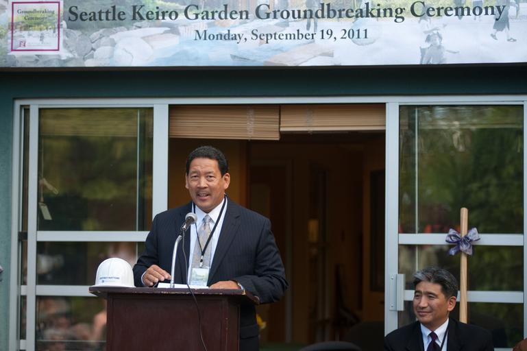 | Keywords: 2011 people groupshot Councilmember Bruce Harrell speaks at the ground breaking ceremony in support of a new garden at the Nikkei Concerns, Seattle  Keiro elder care center on September 19th.  This was "Keiro no Hi"  day in Japan, a day where homage is paid to the elders.  A fitting  day to break ground! Photo credit: Andy O Councilmember Bruce Harrell speaks at the ground breaking ceremony in support of a new garden at the Nikkei Concerns, Seattle  Keiro elder care center on September 19th.  This was "Keiro no Hi"  day in Japan, a day where homage is paid to the elders.  A fitting  day to break ground! Photo credit: Andy O |