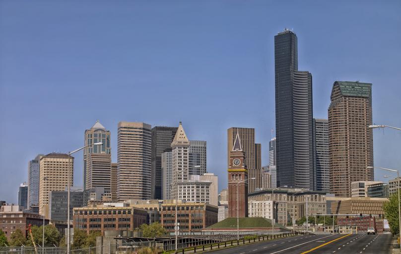 Keywords: seattle washington city cities urban skyscrapers buildings skyline hdr outside architecture sky clouds