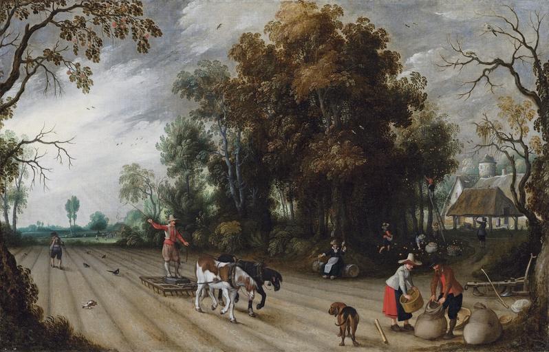 | Keywords: Sebastiaan Vrancx - An Allegory of Autumn.jpg artwork creator Sebastiaan Vrancx An Allegory of Autumn A farmer harrowing a field while another sows with peasants gathering apples in an orchard beyond oil canvas cm 76 2 108 1 accession number object history sale Christie's London 9 July 2008 sale 7610 lot 216<br/>sale Christie's London 3 July 2013 sale 1138 lot 130 credit line 'SV' ~ lower right monogram christies online 5103751 https //toolserver org/~kolossos/image/zoomify php path http //www christies com/lotfinderimages/d57023/d5702358 zoom 4 PD-old-100-1923 Allegories of the seasons by Sebastiaan Vrancx |
