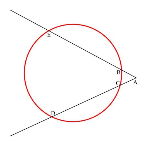 Keywords: Secant-Secant Theorem.svg en wikipedia Andrei Stroe CommonsHelper 2007-01-10 Braindrain0000 wikipedia en Braindrain0000 Original upload log page en wikipedia Secant-Secant_Theorem svg 2007-01-10 02 50 Braindrain0000 300×300× 4491 bytes If two intersecting secants form angle A as shown the measure of angle A is equal to half the difference of the measures of the enclosed arcs BC and DE Circle geometry |