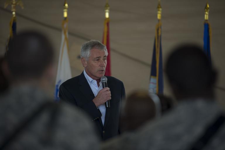 | Keywords: SecDef visits Iraq 141209-D-DT527-082.jpg en Secretary of Defense Chuck Hagel addresses service members at Baghdad International Airport Iraq during a visit Dec 9 2014 Photo by Master Sgt Adrian Cadiz/Released 2014-12-09 Master Sgt Adrian Cadiz https //www dvidshub net/image/1692568 141209-D-DT527-082 2014-12-09 16 06 BAGHDAD IQ PD-USGov Chuck Hagel Images from DoD uploaded by Fæ | ||||