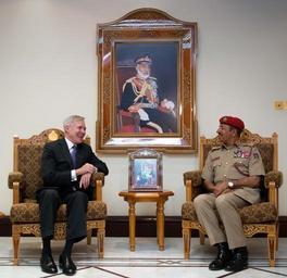 Keywords: SECNAV meets with the Omani Chief of Staff of the Sultan’s Armed Forces. (12467768243).jpg MUSCAT Oman Feb 9 2014 Secretary of the Navy SECNAV Ray Mabus meets with Omani Chief of Staff of the Sultan ™s Armed Forces Lt Gen Ahmed bin Harith Al Nabhini during a visit to the country ™s capital Mabus is in the region to meet with Sailors and Marines and civilian and military officials as part of a multi-nation visit to the U S Pacific European and Central Command areas of responsibility U S Navy photo by Mass Communication Specialist 1st Class Arif Patani/Released 140209-N-PM781-001 Join the conversation http //www navy mil/viewGallery asp www navy mil/viewGallery asp http //www facebook com/USNavy www facebook com/USNavy http //www twitter com/USNavy www twitter com/USNavy http //navylive dodlive mil navylive dodlive mil http //pinterest com pinterest com https //plus google com plus google com http //www flickr com/photos/usnavy/12467768243/ SECNAV meets with the Omani Chief of Staff of the Sultan ™s Armed Forces 2014-02-09 03 06 http //www flickr com/people/56594044 N06 Official U S Navy Page from United States of America Arif Patani/U S Navy Attribution License IPTC Caption-Abstract U S Navy photo PD-USGov-Military-Navy Official U S Navy Imagery http //flickr com/photos/56594044 N06/12467768243 2014-04-03 13 14 47 cc-by-2 0 Oman Ray Mabus Files uploaded by Russavia Two men Smiling men Men with hats Men wearing neckties Photographs of sitting men Photographs of military people in uniform |