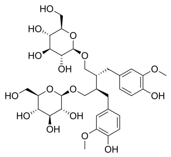 Keywords: Secoisolarisiresinol diglucoside.svg Chemical structure of secoisolarisiresinol diglucoside Own 12 55 24 August 2011 UTC Ed Edgar181 Glucosides Lignans Polyphenols Phenol ethers