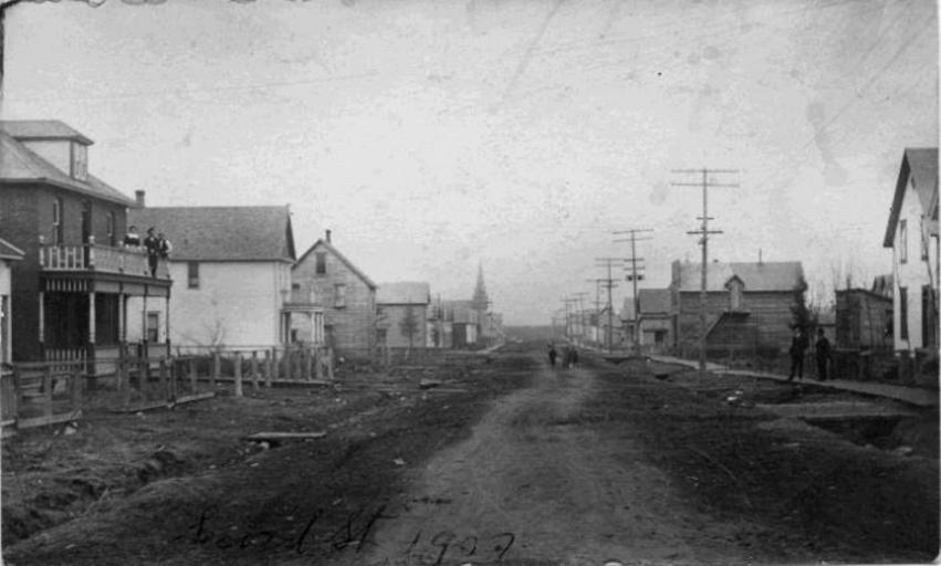 | Keywords: port arthur portarthur thunder bay thunderbay street scenes streetscenes secord street secordstreet residential homes houses churches telegraph wires telegraphwires ontario canada history blackandwhite monochrome outdoor road black and white Date: 1907 Description: This photograph shows Secord Street in Port Arthur in the early 1900's. Primarily a residential neighbourhood, several homes line the dirt street. St. Ansgarius Swedish Church can be seen in the back proper right as well as a few people going about their daily business. Accession No.: 981.8.45 Date: 1907 Description: This photograph shows Secord Street in Port Arthur in the early 1900's. Primarily a residential neighbourhood, several homes line the dirt street. St. Ansgarius Swedish Church can be seen in the back proper right as well as a few people going about their daily business. Accession No.: 981.8.45 |