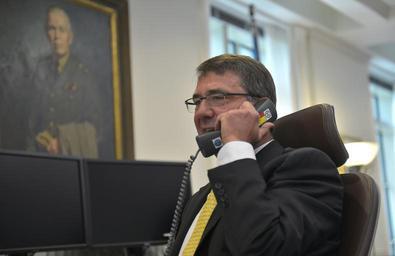 | Keywords: Secretary of defense congratulates first women to graduate from US Army Ranger School 150820-D-NI589-058.jpg en Secretary of Defense Ash Carter speaks by phone with Army 1st Lt Shaye Haver and 1st Lt Kristen Griest to congratulate the two for their recent graduation from the rigorous Army Ranger School from his office at the Pentagon Aug 20 2015 Haver and Griest are the first women to successfully complete the course after the Army began allowing women to participate in the elite program DOD Photo by Glenn Fawcett/Released 2015-08-20 Glenn Fawcett https //www dvidshub net/image/2133408 150820-D-NI589-058 2015-08-20 12 59 PENTAGON DC US 3 PD-USGov Ashton Carter Images from DoD uploaded by Fæ Photographs by Glenn Fawcett |