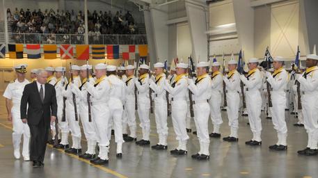 Keywords: Secretary of Defense Robert M. Gates, left, inspects a recruit rifle drill squad with U.S. Navy Capt. John W. Peterson, commanding officer of Recruit Training Command, July 17, 2009, during a recruit graduation 090717-N-IK959-049.jpg Secretary of Defense Robert M Gates left inspects a recruit rifle drill squad with U S Navy Capt John W Peterson commanding officer of Recruit Training Command July 17 2009 during a recruit graduation ceremony at Naval Station Great Lakes Ill Gates was the reviewing officer at the graduation during his first visit to the Navy's only boot camp 2009 07 17 Scott A Thornbloom http //www defenseimagery mil/imageRetrieve action guid 027c991539e5f9b739070f5056b3342db206e65b t 2 Public domain photograph from defenseimagery mil http //www defenseimagery mil/imagery html guid 027c991539e5f9b739070f5056b3342db206e65b 090717-N-IK959-049 2009-08-12 Naval Station Great Lakes PD-USGov-Military-Navy Images from DoD uploaded by Fæ check needed Images from DoD uploaded by Fæ Robert Gates in 2009 |