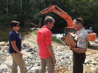 | Keywords: hurricanesandyproject94 hurricanesandyproject94a dams rivers new jersey newjersey dam removal damremoval aquatic connectivity aquaticconnectivity hurricanesandyfws events outdoor U.S. Secretary of the Interior Sally Jewell joined Interior, state and local officials and partners at the Hughesville Dam removal on the Musconetcong River. Jewell discusses details of the project with Eric Schrading, field supervisor for the U.S Fish and Wildlife Service’s New Jersey Field Office while Beth Styler Barry, executive director of the Musconetcong Watershed Association listens in. The removal of the Hughesville Dam is part of a larger collaborative effort to restore the 42-mile Musconetcong – a designated “Wild and Scenic River” – to a free-flowing state. Hughesville is the fifth dam to be removed, helping to open up fish passage while improving safety and flooding risks for the local community. The project is one of a dozen dam removals in the Northeast supported by federal funding for Hurricane Sandy recovery to help strengthen natural defenses along the Atlantic Coast and protect communities and wildlife against future storms predicted with a changing climate. Photo credit: Katie Conrad/USFWS Press Release: bit.ly/2dfWlMR More about the Hughesville Dam project: www.fws.gov/hurricane/sandy/projects/NJDamRemoval.html Read about all Hurriane Sandy resiliency projects: www.fws.gov/hurricane/sandy/projects.html U.S. Secretary of the Interior Sally Jewell joined Interior, state and local officials and partners at the Hughesville Dam removal on the Musconetcong River. Jewell discusses details of the project with Eric Schrading, field supervisor for the U.S Fish and Wildlife Service’s New Jersey Field Office while Beth Styler Barry, executive director of the Musconetcong Watershed Association listens in. The removal of the Hughesville Dam is part of a larger collaborative effort to restore the 42-mile Musconetcong – a designated “Wild and Scenic River” – to a free-flowing state. Hughesville is the fifth dam to be removed, helping to open up fish passage while improving safety and flooding risks for the local community. The project is one of a dozen dam removals in the Northeast supported by federal funding for Hurricane Sandy recovery to help strengthen natural defenses along the Atlantic Coast and protect communities and wildlife against future storms predicted with a changing climate. Photo credit: Katie Conrad/USFWS Press Release: bit.ly/2dfWlMR More about the Hughesville Dam project: www.fws.gov/hurricane/sandy/projects/NJDamRemoval.html Read about all Hurriane Sandy resiliency projects: www.fws.gov/hurricane/sandy/projects.html |