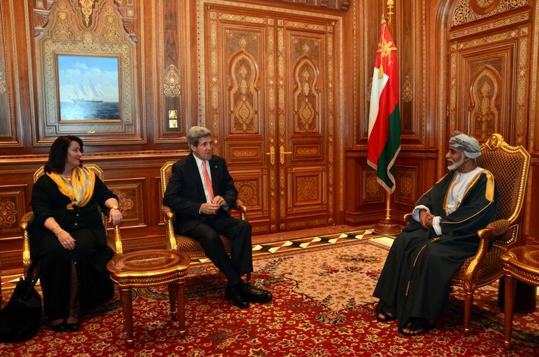 Keywords: Secretary Kerry and Ambassador Holtz Meet With Omani Sultan Qaboos bin Said Al Said.jpg U S Ambassador to Oman Greta Holtz meet with Sultan of Oman Qaboos bin Said Al Said in Muscat Oman on May 21 2013 State Department photo/ Public Domain 2013-05-21 14 42 06 http //www flickr com/photos/statephotos/8771913358/sizes/o/in/photostream/ U S Department of State U S Department of State http //flickr com/photos/9364837 N06/8771913358 2013-05-21 19 18 53 United States Government Work PD-USGov Uploaded with UploadWizard John Kerry in 2013 Qaboos bin Said al Said |