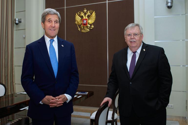 | Keywords: Secretary Kerry, Ambassador Tefft Chat With Reporters Before Bilateral Meeting With Russian President Putin in Sochi.jpg en U S Secretary of State John Kerry and U S Ambassador to Russia John Tefft chat with reporters before they meet with Russian President Vladimir Putin at the Bocherov Ruche - a government villa - in Sochi Russia on May 12 2015 State Department photo/ Public Domain 2015-05-12 09 54 04 http //www flickr com/photos/9364837 N06/17561063241/ U S Department of State other versions 43 618182 39 721069 PD-USGov PD-USGov Bilateral relations of the United States Uploaded with UploadWizard |