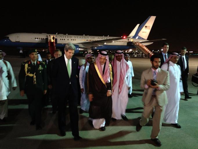 | Keywords: Secretary Kerry Arrivals in Saudi Arabia.jpg en U S Secretary of State John Kerry walks with Saudi Arabian Foreign Minister Saud Al-Faisal upon his arrival to Riyadh Saudi Arabia on March 3 2013 State Department photo/ Public Domain 2013-03-03 20 22 51 http //www flickr com/photos/statephotos/8525824734/sizes/o/in/photostream/ U S Department of State 24 708166666667 46 719333333333 U S Department of State http //flickr com/photos/9364837 N06/8525824734 2013-03-04 05 50 44 United States Government Work PD-USGov Uploaded with UploadWizard John Kerry in 2013 Saud bin Faisal |