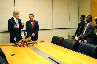 Keywords: Secretary Kerry and Ethiopian Foreign Minister Adhanom Hold a News Conference in Addis Ababa (2).jpg en U S Secretary of State John Kerry takes a question from an African journalist as the Secretary and Ethiopian Foreign Minister Tedros Adhanom hold a news conference at the 50th anniversary African Union Summit in Addis Ababa Ethiopia on May 25 2013 State Department photo/ Public Domain 2013-05-25 02 20 33 http //www flickr com/photos/statephotos/8814697419/sizes/o/in/photostream/ U S Department of State U S Department of State http //flickr com/photos/9364837 N06/8814697419 2013-05-25 17 06 37 United States Government Work PD-USGov Tedros Adhanom Ghebreyesus Uploaded with UploadWizard John Kerry visit to Ethiopia May 2013