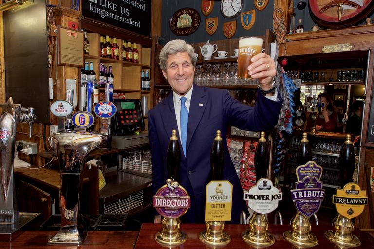 | Keywords: beer tap on tap ontap indoor U.S. Secretary of State John Kerry hoists a pint of bitter at the historic King Arms pub in Oxford, U.K., on May 11, 2016, after the Secretary earlier addressed the Oxford Union membership and met with U.S. Rhodes and Marshall scholars attending Oxford University. [State Department photo/ Public Domain] U.S. Secretary of State John Kerry hoists a pint of bitter at the historic King Arms pub in Oxford, U.K., on May 11, 2016, after the Secretary earlier addressed the Oxford Union membership and met with U.S. Rhodes and Marshall scholars attending Oxford University. [State Department photo/ Public Domain] |