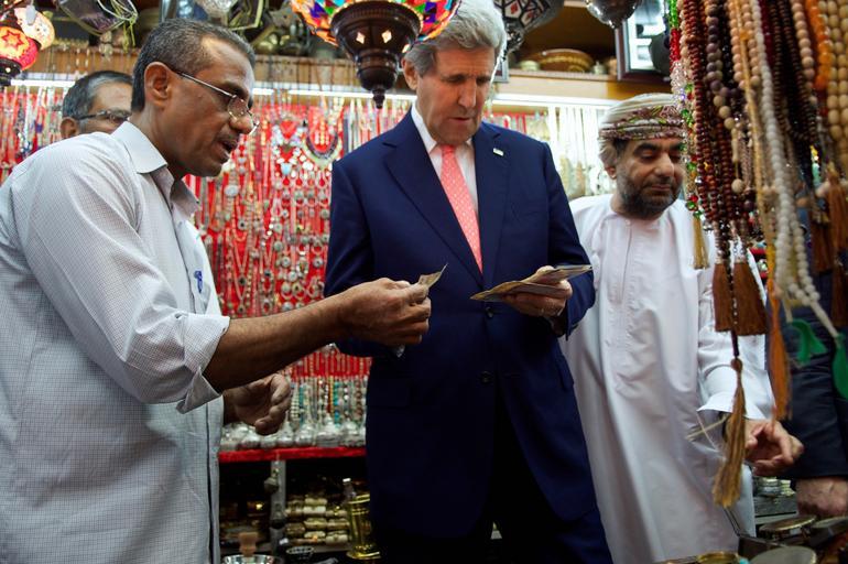 Keywords: Secretary Kerry Pays for Purchases During Visit to Muttrah Souk in Oman.jpg en U S Secretary of State John Kerry pays a vendor Omani rials for goods he purchased during a visit to the Muttrah Souk in Muscat Oman on November 10 2014 during a break in P5+1 negotiations with Iran about the future of its nuclear program State Department photo/ Public Domain 2014-11-10 08 57 48 http //www flickr com/photos/9364837 N06/15137930194/ U S Department of State other versions 23 617531 58 583439 PD-USGov PD-USGov Bilateral relations of the United States Uploaded with UploadWizard |