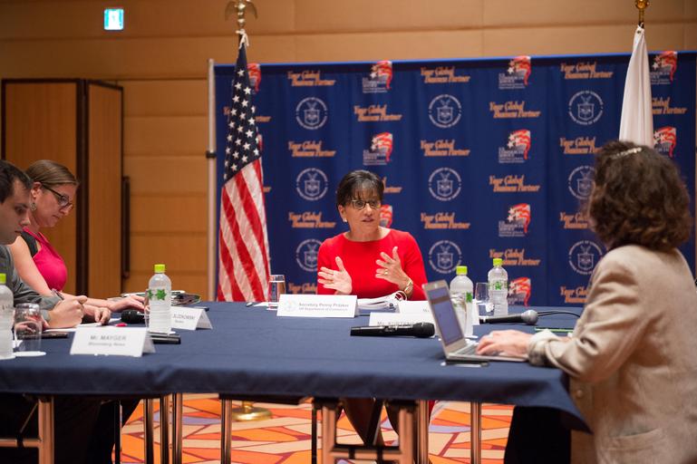 | Keywords: Secretary Pritzker Addresses International Media in Tokyo - Flickr - East Asia and Pacific Media Hub.jpg TOKYO Japan October 21 2014 U S Secretary of Commerce Penny Pritzker addresses the international media in Tokyo State Department photo by William Ng/Public Domain https //www flickr com/photos/eapmediahub/15587485251/ Secretary Pritzker Addresses International Media in Tokyo 2014-10-21 12 44 https //www flickr com/people/56477391 N06 East Asia and Pacific Media Hub U S Department of State PD-USGov East Asia and Pacific Media Hub https //flickr com/photos/56477391 N06/15587485251 2016-11-27 06 14 26 United States Government Work Files_from_East_Asia_and_Pacific_Media_Hub_U S _Department_of_State_Flickr_stream Files_uploaded_by_Josve05a_ U S _DoS Penny Pritzker |