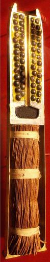 Keywords: Sectioned18pdrShrapnelRound.jpg This cutaway of an 18-pounder shell reveals the 375 lead-antimony shrapnel balls which were embedded in resin to hold them in a stable position <br>The fuze in the nose not present in this example was time set to ignite as the shell approached the target The fuze sent a flash down the central tube which contained gunpowder pellets The flash reached the powder charge in the cavity in the base of the shell At this point the shell was usually 60-80 feet above the ground and angling down towards the target if the fuze had been set correctly <br>This small explosion propelled the balls forward out of the front of the shell case at increased velocity and the shell's spin caused them to spread in a cone moving forward and towards the ground The effect was of a large shotgun blast fired from in front of and above the target The usual target was barbed wire defences and troops <br>The resin gave off a white puff of smoke as it burned allowing the gunners to check their aim <p>In the cartridge below the shell is a simulated bundle of cordite the propellant charge which fired the shell This is a clipped and brightened section of Image Brisanzgranate 1 db jpg uploaded by User Dickbauch 2007-10-29 rcbutcher Image Brisanzgranate 1 db jpg Artillery at the Canadian War Museum QF 18 pounder ammunition World War I artillery ammunition QF 18 pounder Shrapnel shell QF 18 pounder Sectioned artillery ammunition QF 18 pounder |