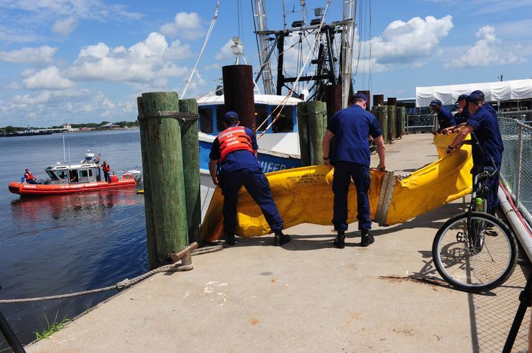 Keywords: Sector Jacksonville pollution demonstration DVIDS1121455.jpg en MAYPORT Fla - Coast Guard Sector Jacksonville marine pollution responders and Coast Guard Cutter Valiant crewmembers deploy oil-containment boom around a commercial vessel at the Safe Harbor Marina Wednesday Aug 15 2012 The boom is used to contain an oil spill in order for cleanup efforts to be made U S Coast Guard photo by Petty Officer 3rd Class Jessica Potter 2012-08-15 Petty Officer 3rd Class Jessica Potter https //www dvidshub net/image/1121455 1121455 2013-12-13 00 13 MAYPORT FL US PD-USGov Coast Guard Sector Jacksonville Images from DoD uploaded by Fæ |