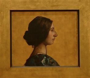 | Keywords: Seebach, Portrait d'Elsa Koeberlé (2).jpg Artwork Creator Lothar von Seebach fr Portrait en buste de profil à droite cheveux coiffés en bandeaux cachant les oreilles châtains foncés relevés en chignon dans la nuque Blouse verte et brun rouge bariolée sur fond or <br/> R S au crayon Seebach R Ce tableau mon portrait doit être illisible au musée de strasbourg Elsa K <br/> Legs d'Elsa Koeberle Villeneuve-lès-Avignon en 1950 c 1898 Oil on canvas cm 40 5 48 Institution Musée d'art moderne et contemporain de Strasbourg Inv 55 974 0 42 own photo or scan Ji-Elle PD-old-70 Elsa Koeberle Lothar von Seebach |