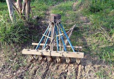 Keywords: seed dispenser seed planter farm implement traditional karnataka india
